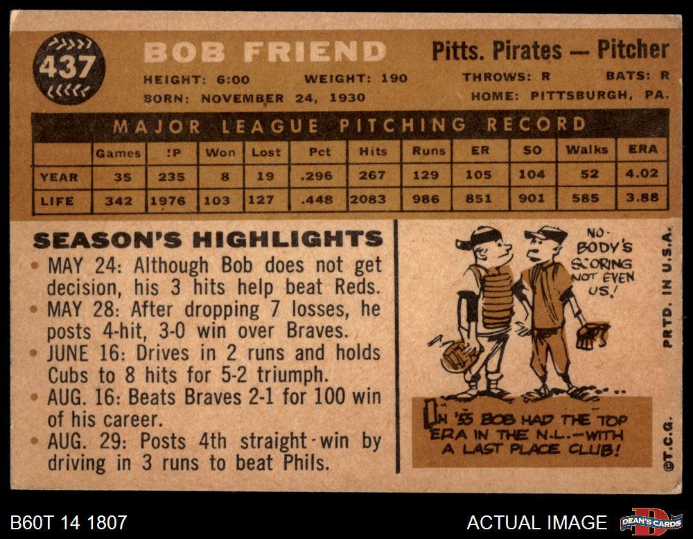 1960 Topps #437 Bob Friend 4 - VG/EX