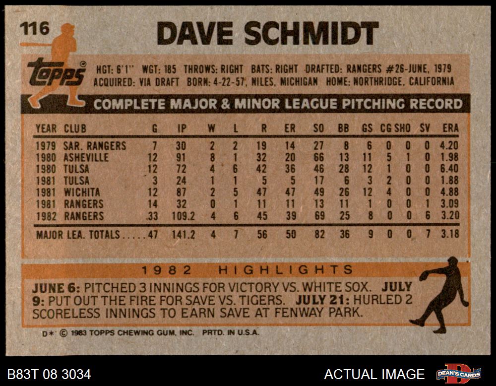 1983 Topps #116 Dave Schmidt 8 - NM/MT
