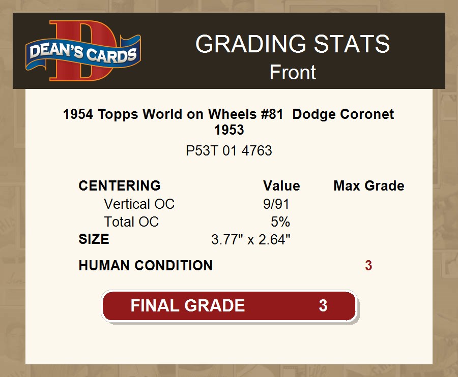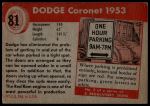 1954 Topps World on Wheels #81 Dodge Coronet 1953 3 - VG