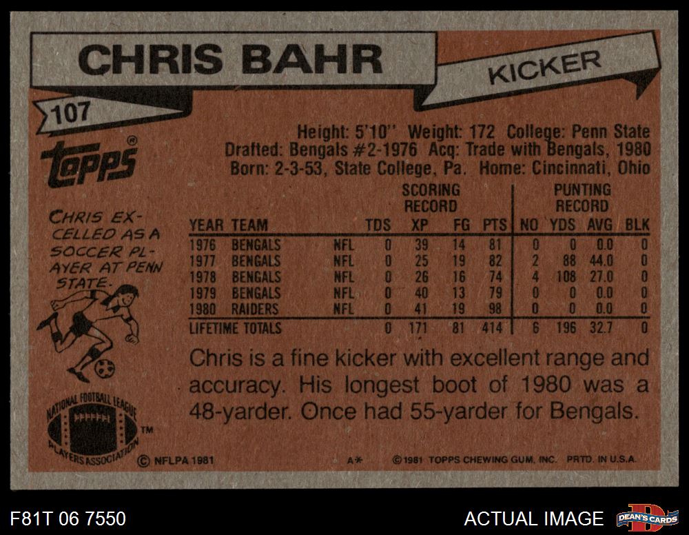 1981 Topps #107 Chris Bahr 8 - NM/MT