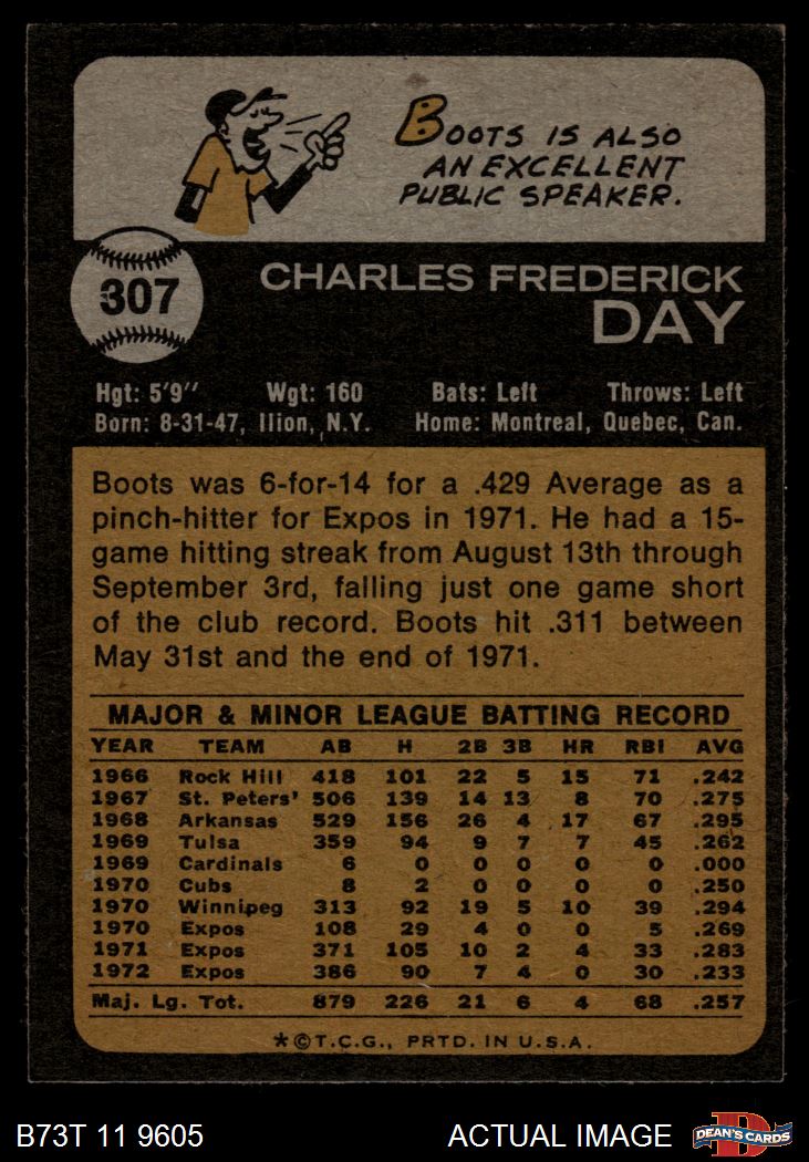 1973 Topps #307 Boots Day 6 - EX/MT