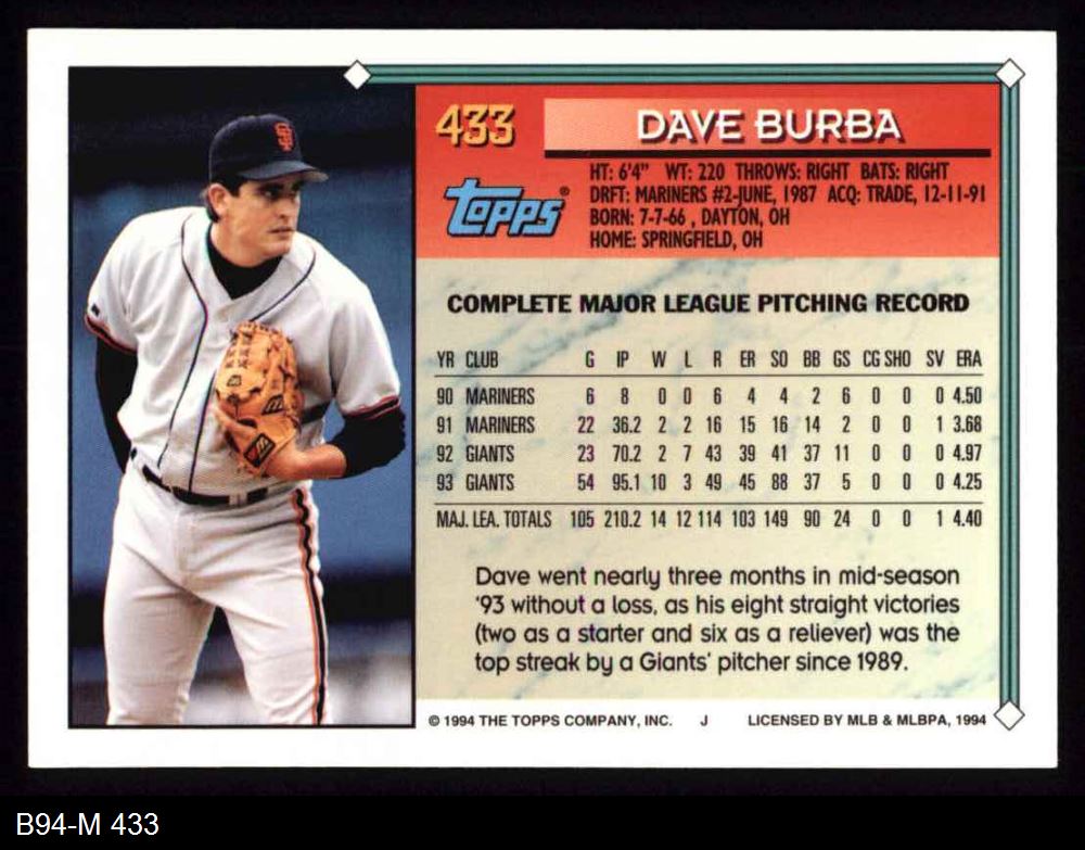 1994 Topps #433 Dave Burba 8 - NM/MT