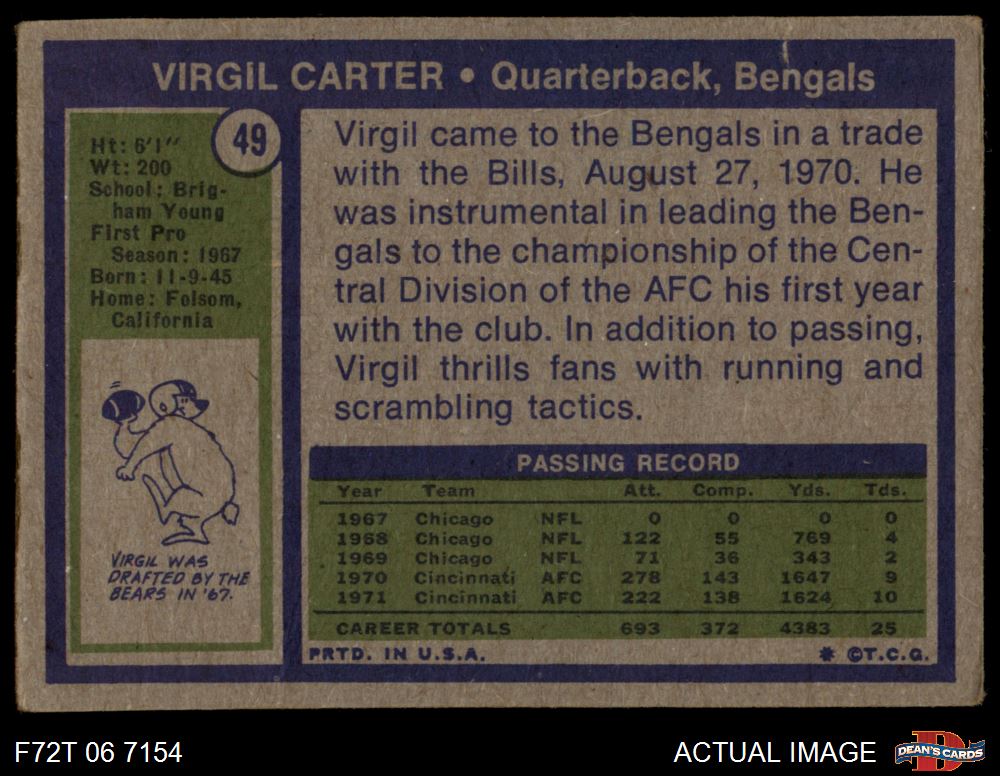 1972 Topps #49 Virgil Carter 1 - POOR