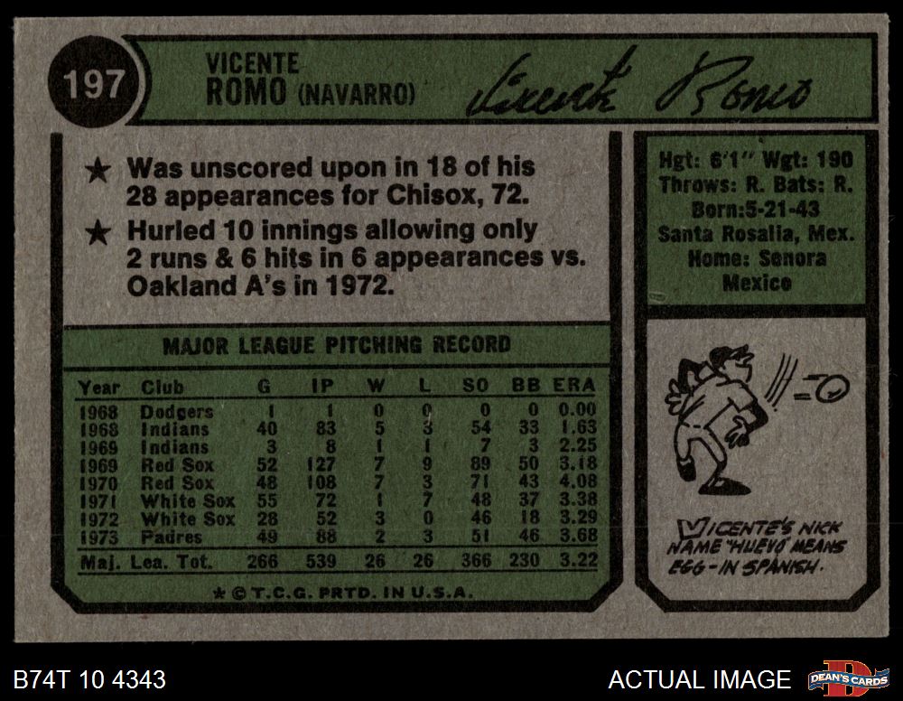 1974 Topps #197 SD Vicente Romo 4 - VG/EX