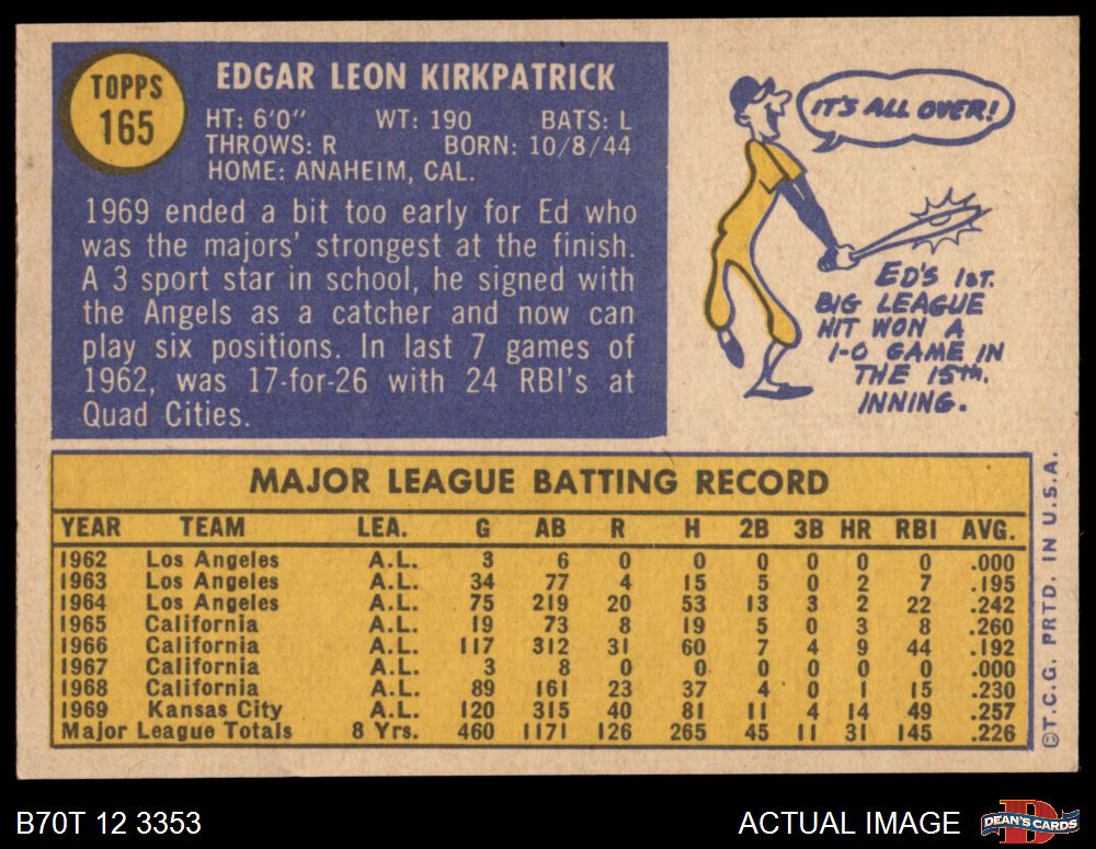 1970 Topps #165 Ed Kirkpatrick 4 - VG/EX