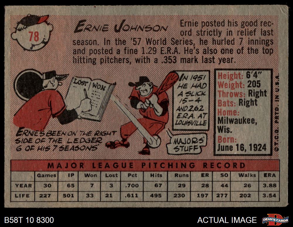 1958 Topps #78 YN Ernie Johnson Front Thumbnail