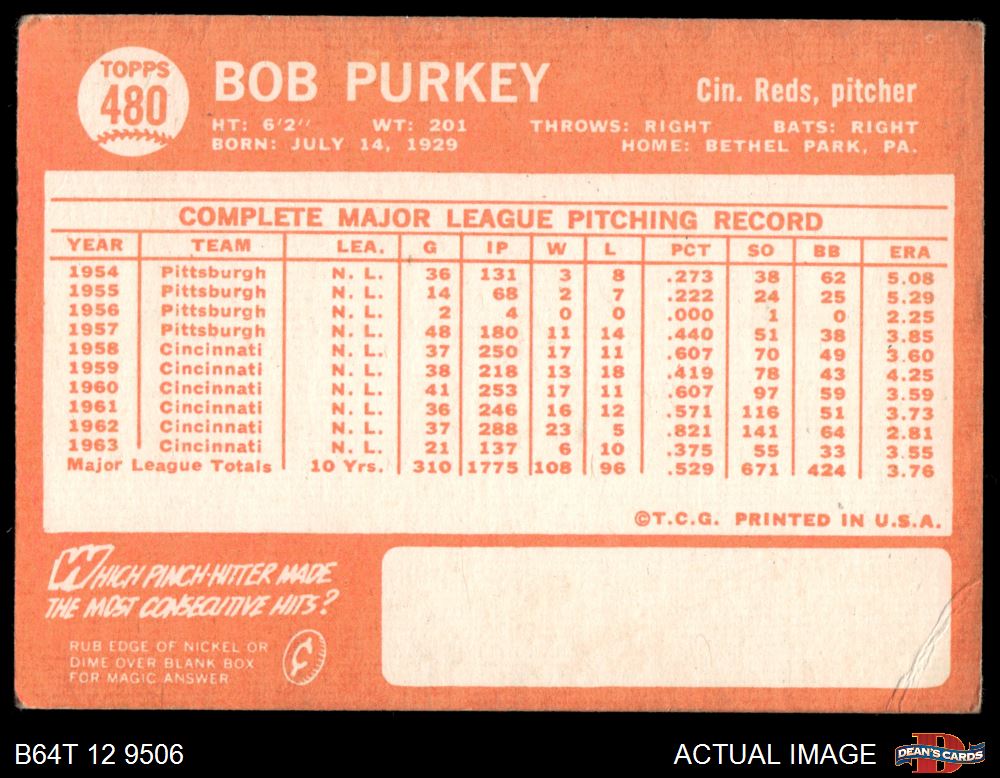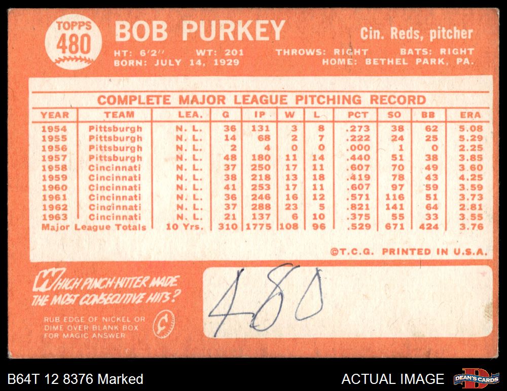 1964 Topps #480 Bob Purkey Front Thumbnail