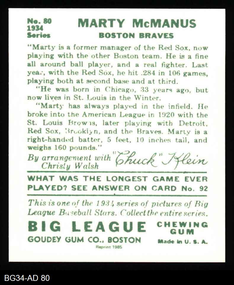 1934 Goudey Reprint (492 available)1934 Goudey Reprint Braves (44 available)