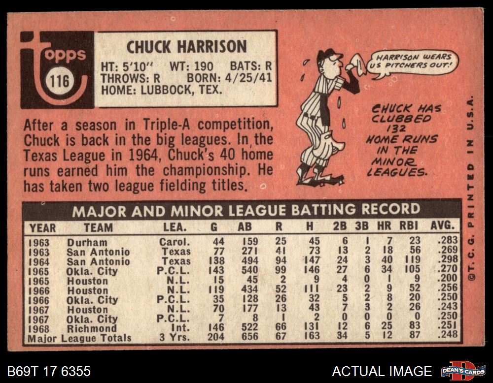 1969 Topps #116 Chuck Harrison