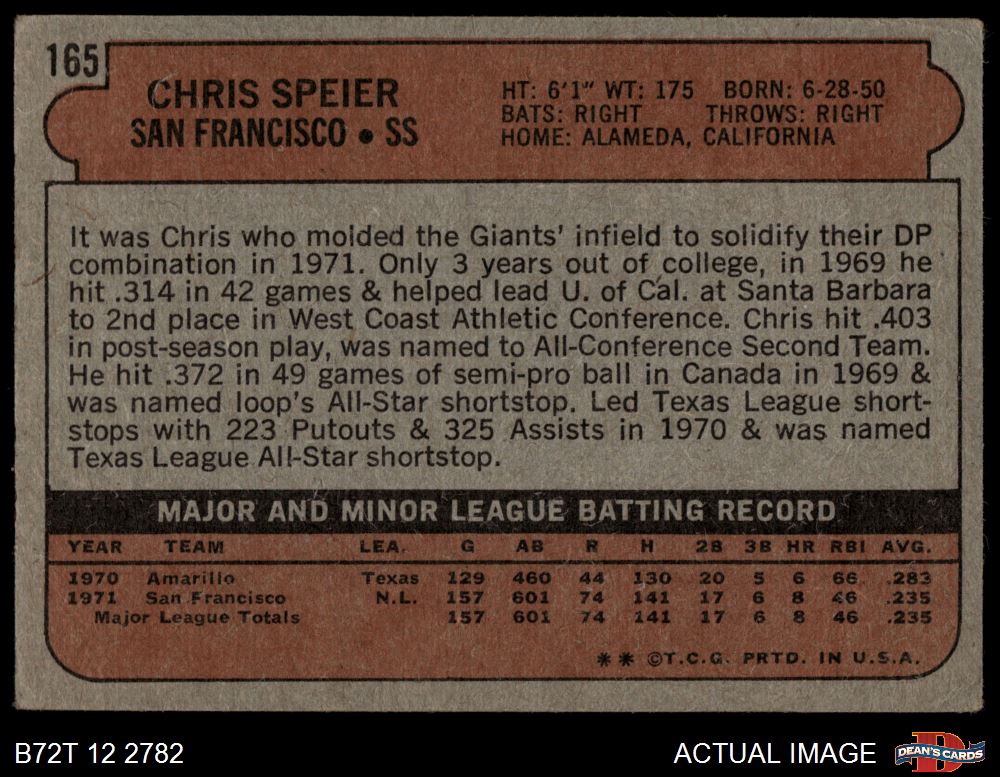 1972 Topps #165 Chris Speier Front Thumbnail