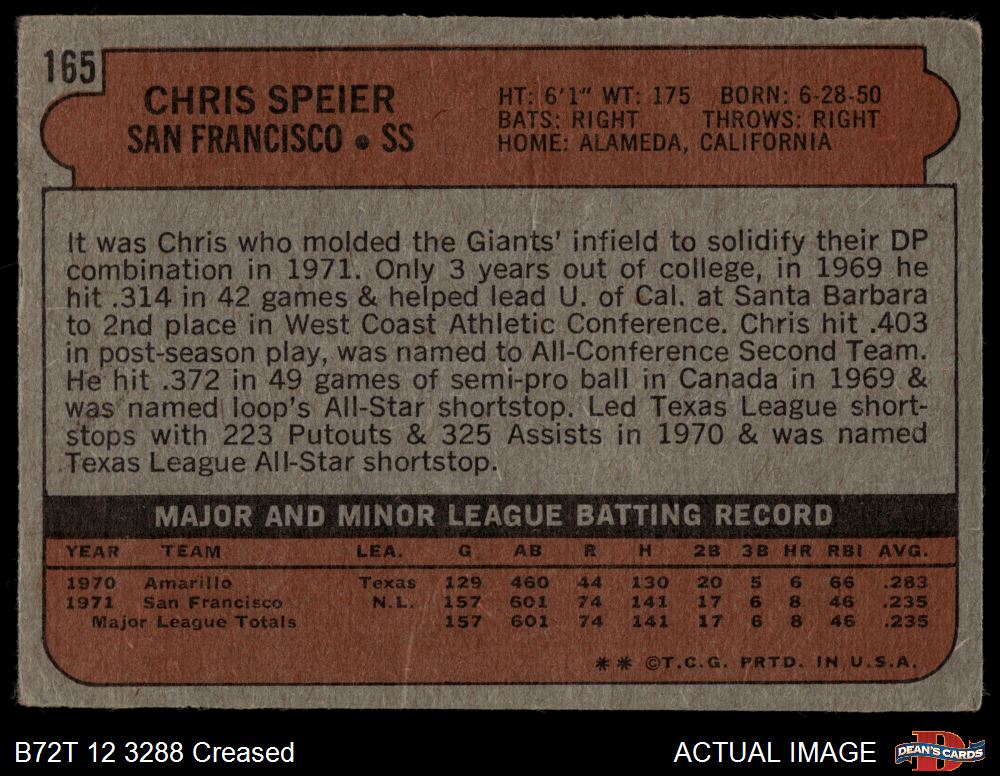1972 Topps #165 Chris Speier 1 - POOR