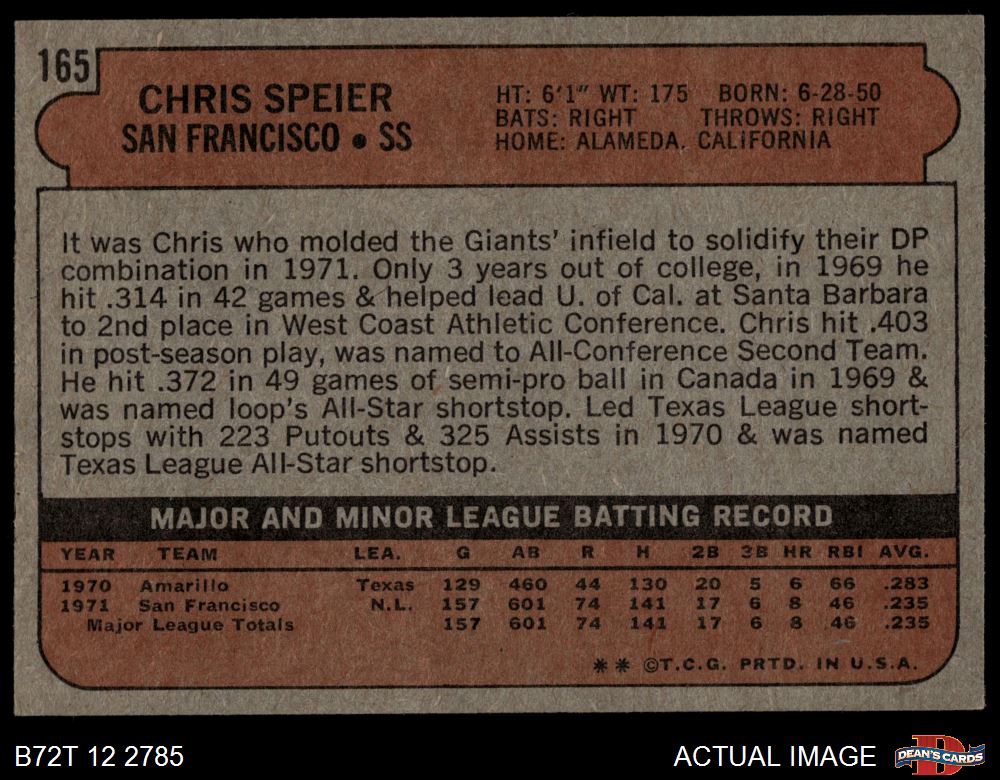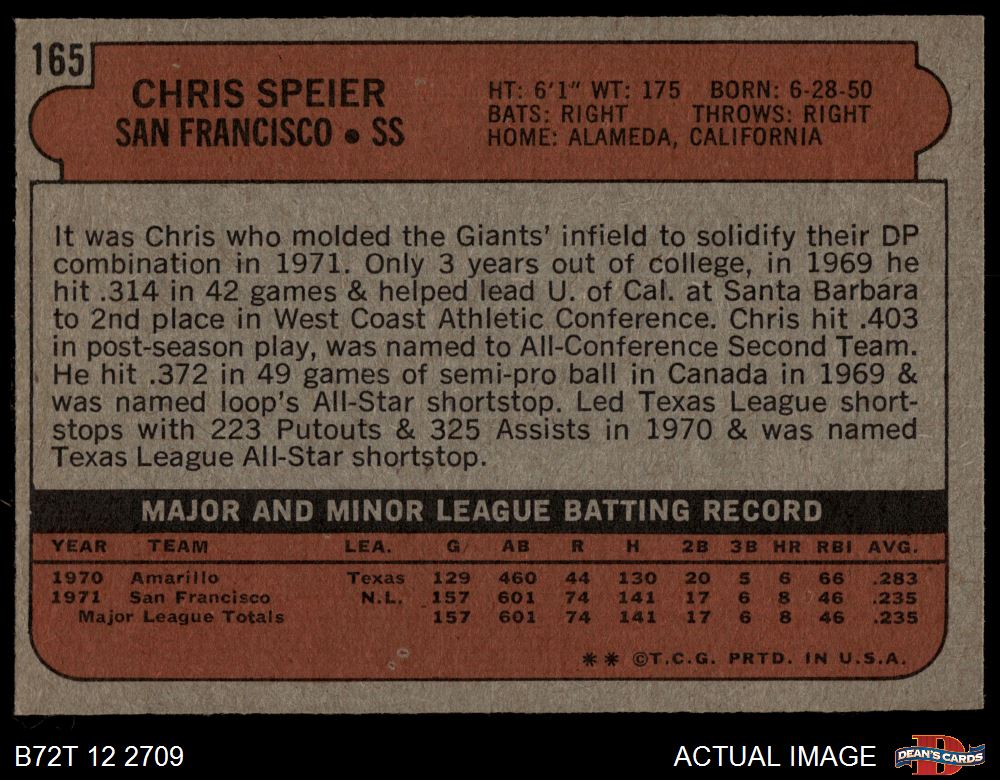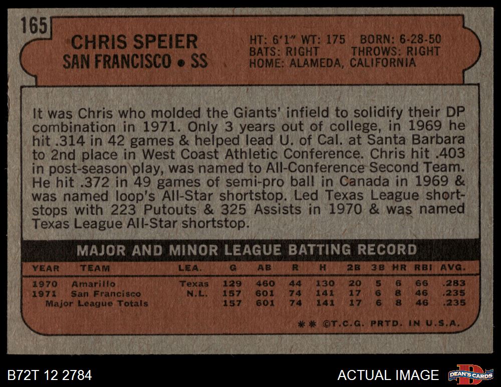 1972 Topps #165 Chris Speier