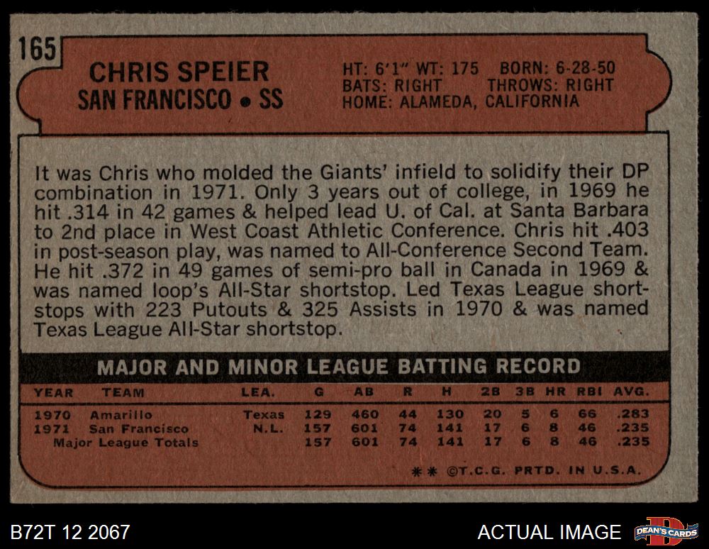 1972 Topps #165 Chris Speier 3.5 - VG+