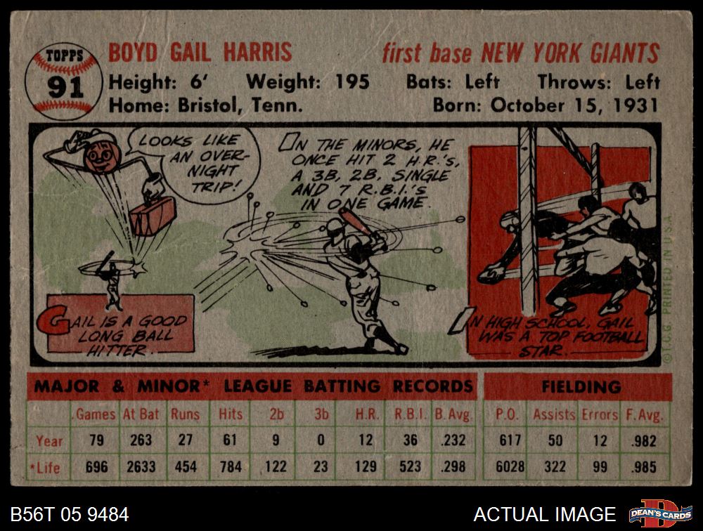 1956 Topps #91 Gail Harris 1 - POOR