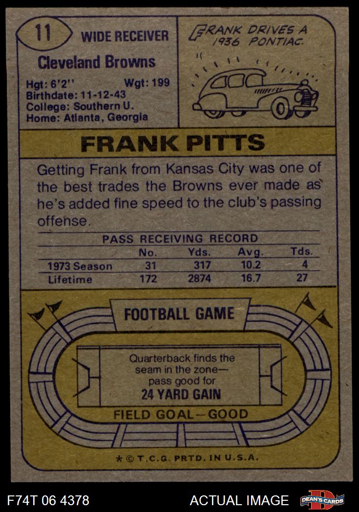 1974 Topps #11 ONE Frank Pitts 4 - VG/EX