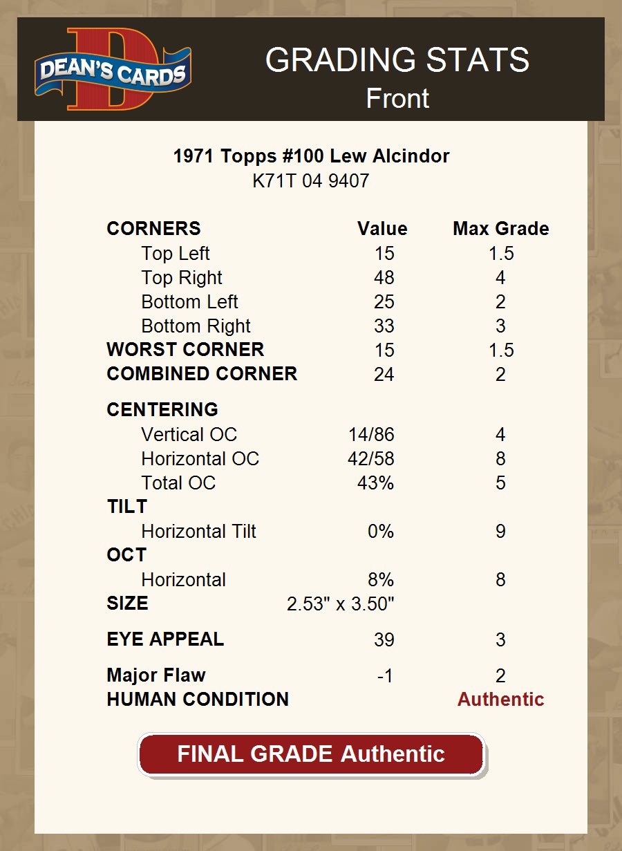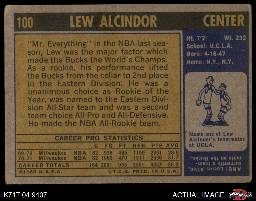 1971 Topps #100 Lew Alcindor AUTHENTIC