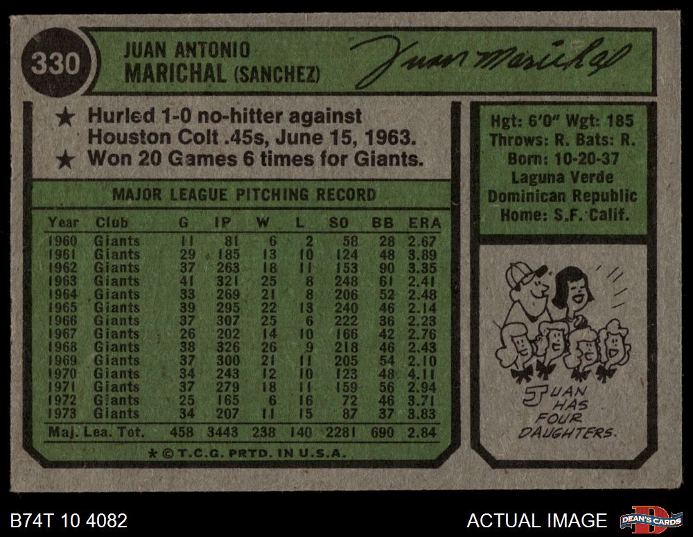 1974 Topps #330 Juan Marichal 2 - GOOD