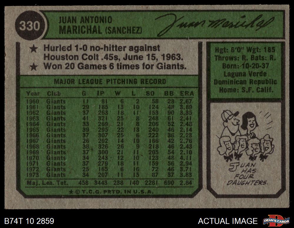 1974 Topps #330 Juan Marichal 6 - EX/MT