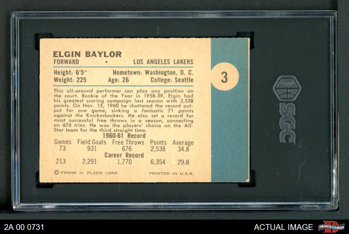 1961 Fleer #3 Elgin Baylor SGC 3 - VG