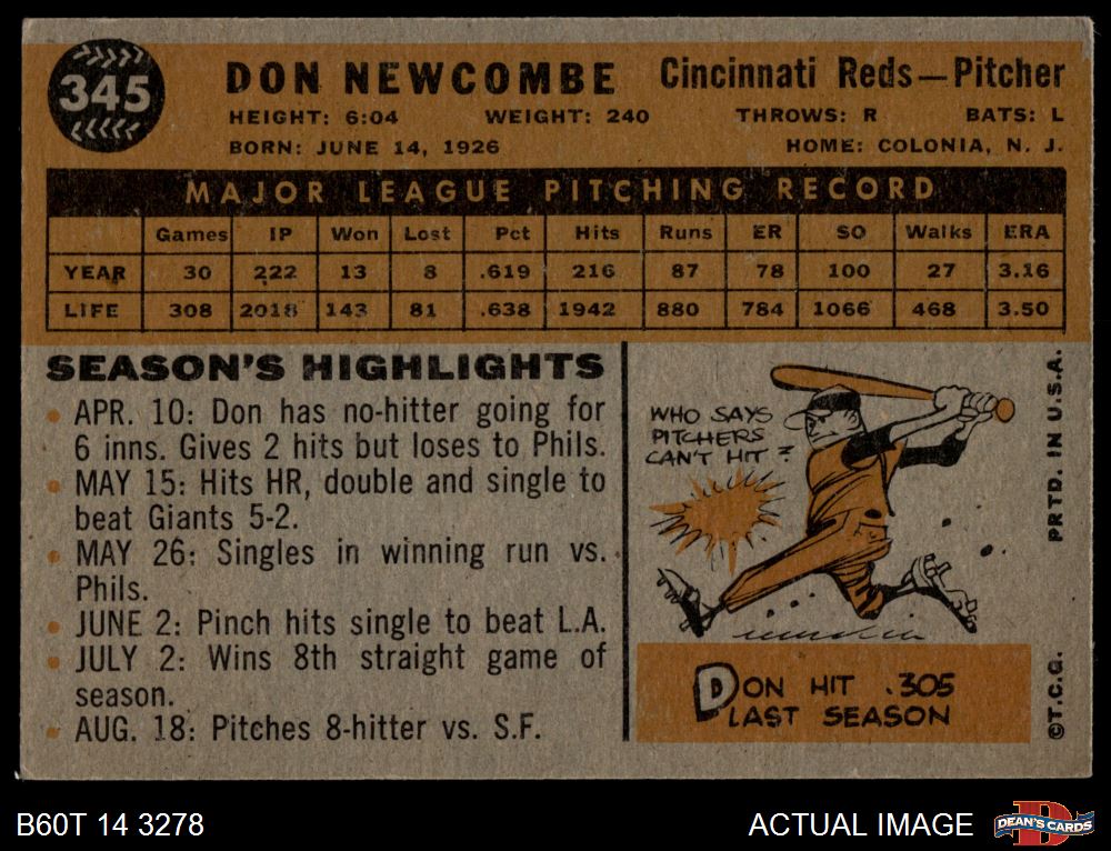 1960 Topps #345 Don Newcombe 2 - GOOD