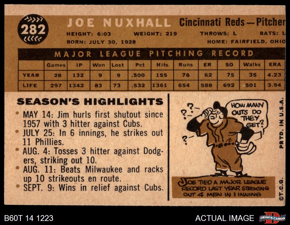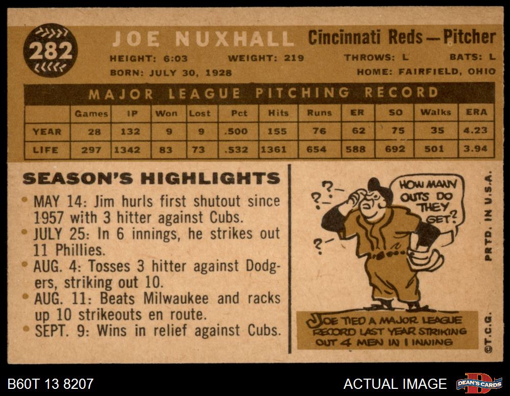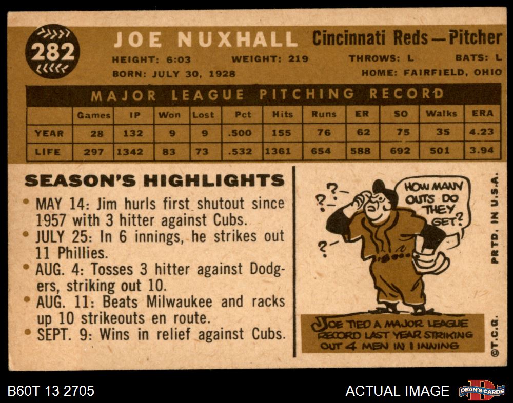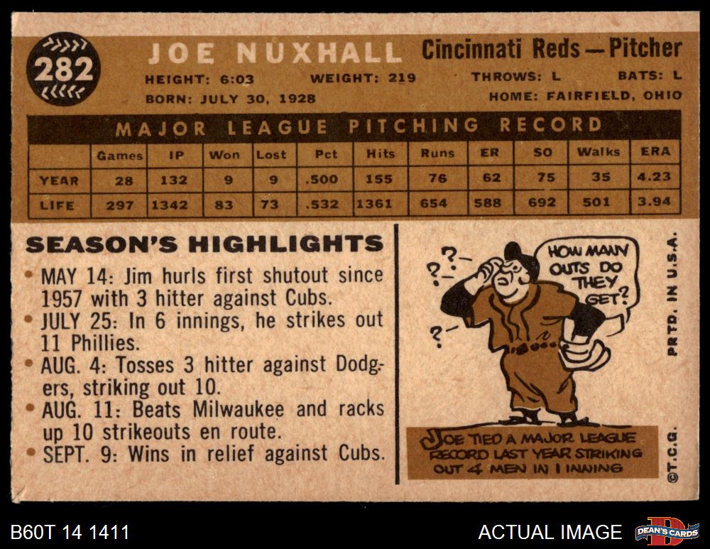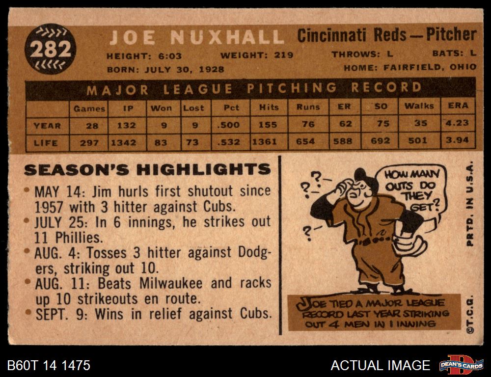 1960 Topps #282 Joe Nuxhall 4 - VG/EX