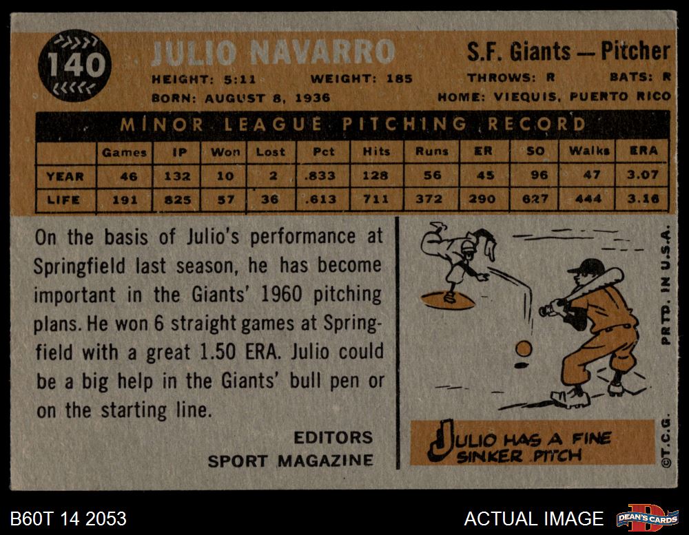 1960 Topps #140 - Julio Navarro Rookie Star 3 - VG