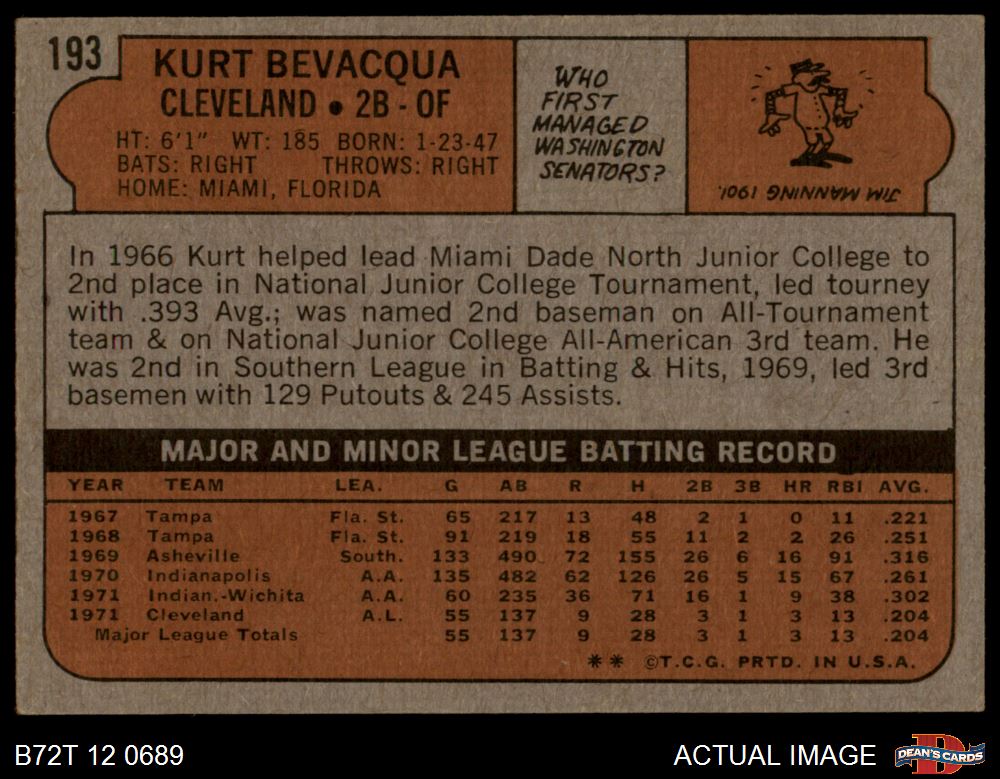 1972 Topps #193 Kurt Bevacqua 2 - GOOD