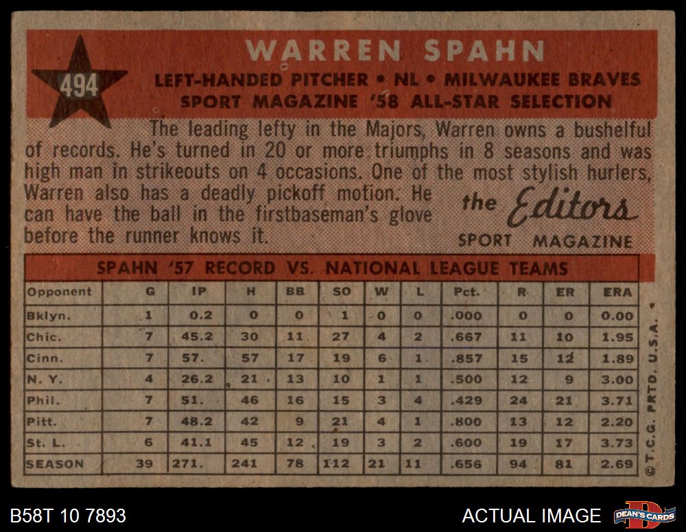 1958 1958 #494 - Warren Spahn All-Star 3 - VG