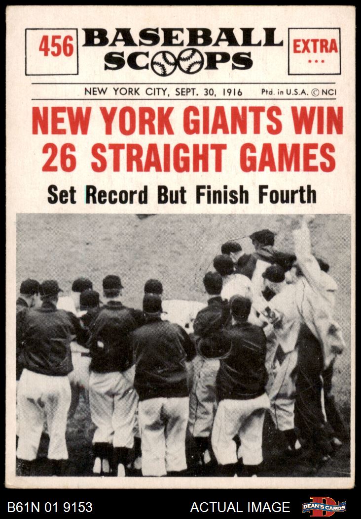 1961 Nu-Card Scoops #456 New York Giants Win 26 Straight Games