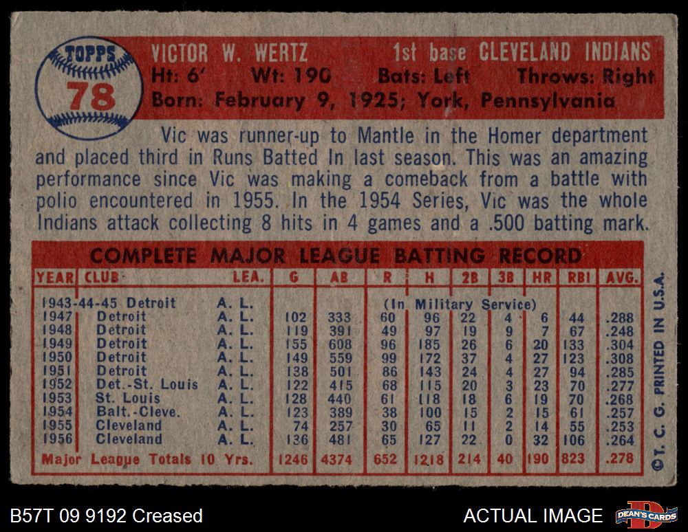 1957 Topps #78 Vic Wertz 2 - GOOD