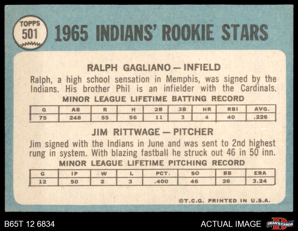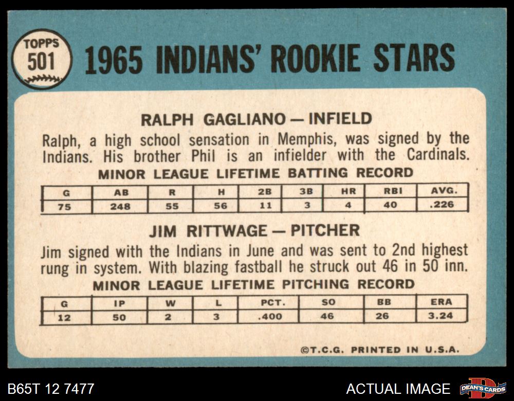 1965 Topps #501 - Jim Rittwage / Ralph Gagliano Indians Rookies 5 - EX
