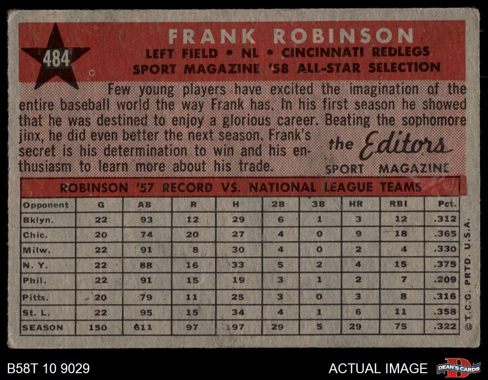 1958 Topps #484 - Frank Robinson All-Star 2 - GOOD