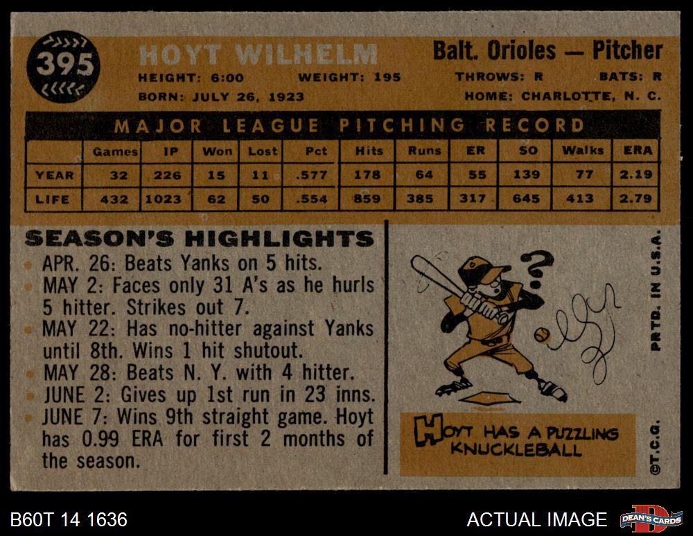 1960 Topps #395 Hoyt Wilhelm 2 - GOOD