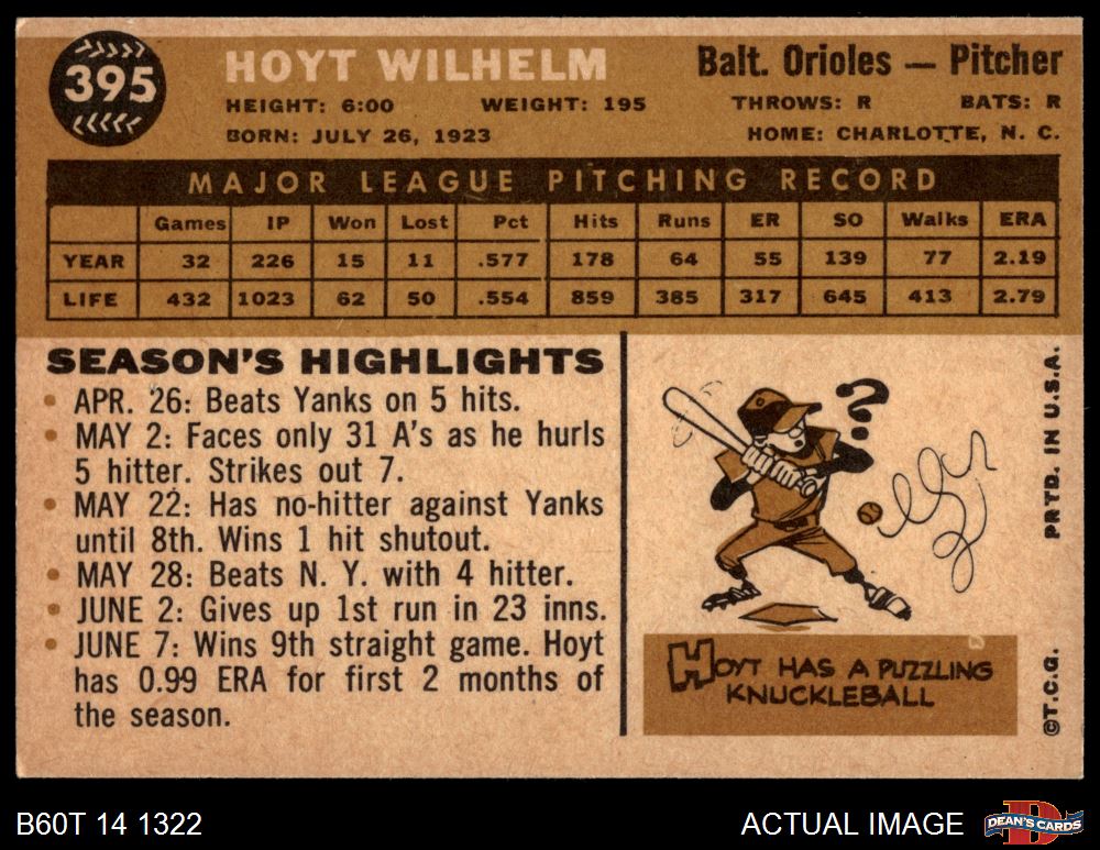 1960 Topps #395 Hoyt Wilhelm 6 - EX/MT