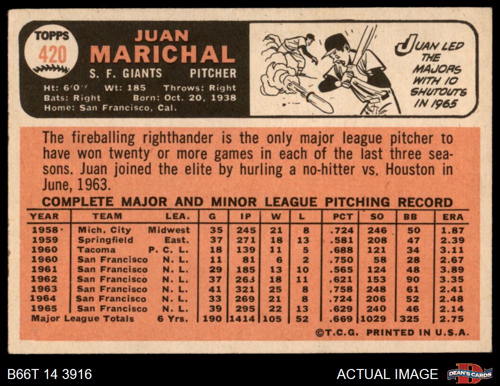 1966 Topps #420 Juan Marichal 5 - EX