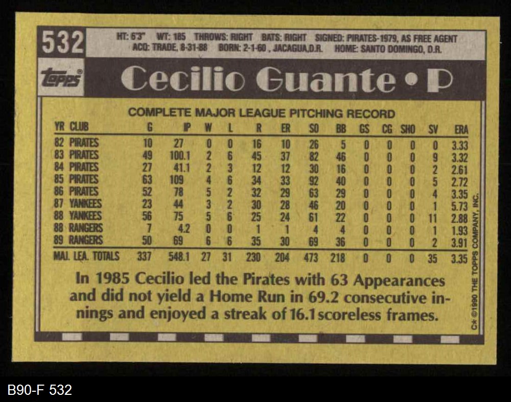 1990 Topps #532 Cecilio Guante 8 - NM/MT