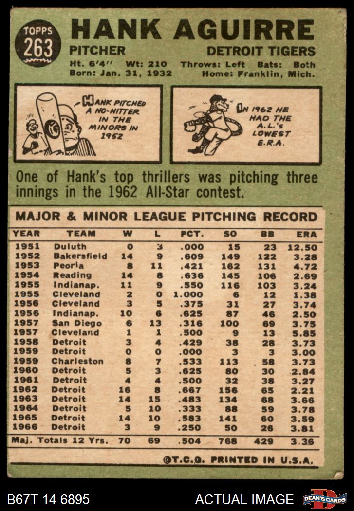 1967 Topps #263 Hank Aguirre 1.5 - FAIR