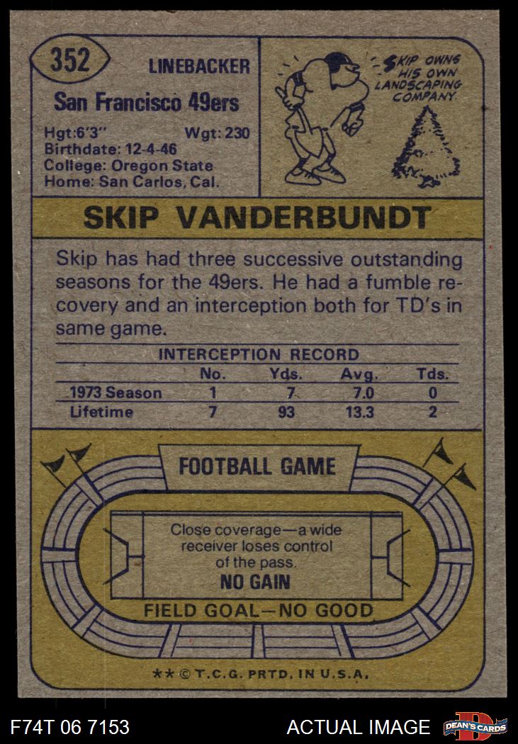 1974 Topps #352 Skip Vanderbundt