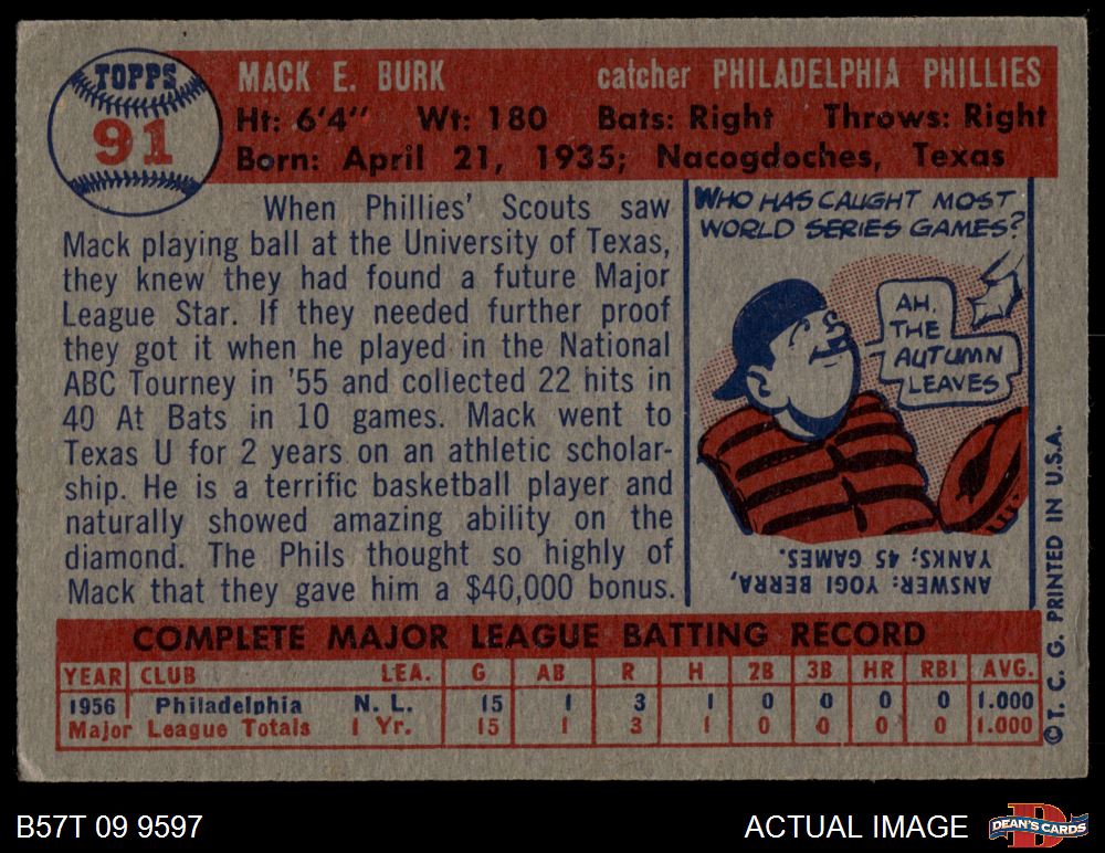 1957 Topps #91 Mack Burk 3.5 - VG+