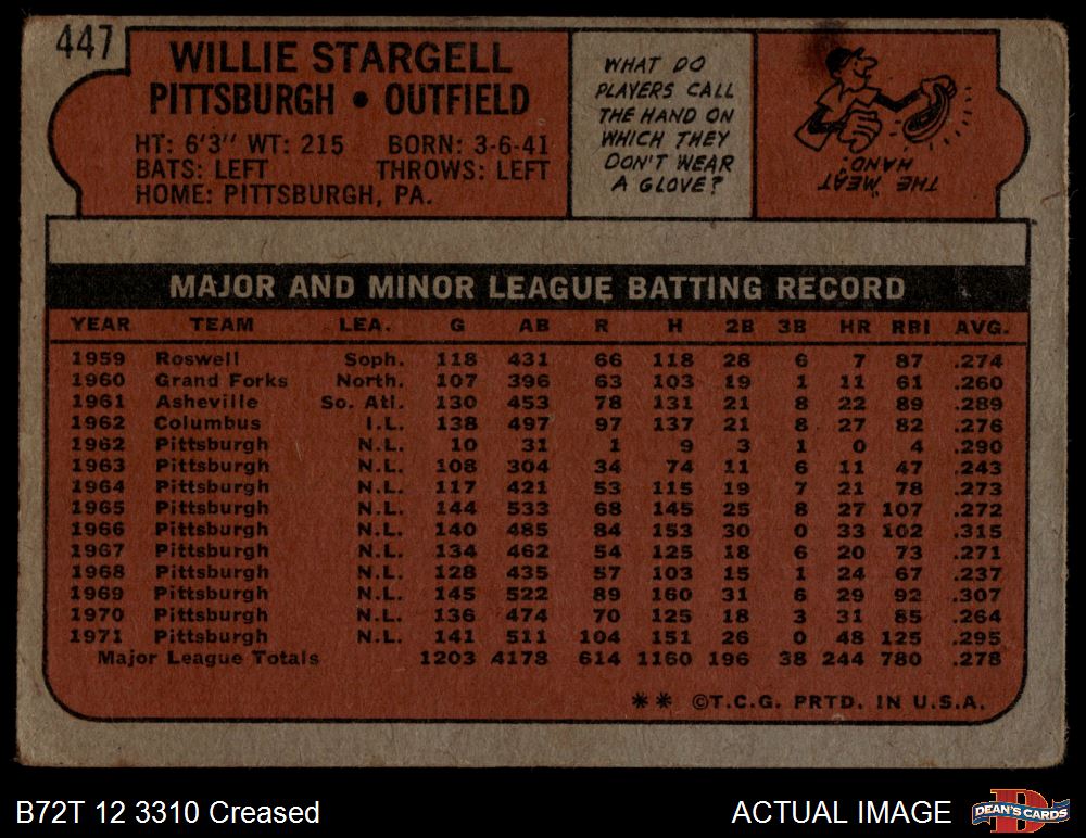 1972 Topps #447 Willie Stargell 1 - POOR