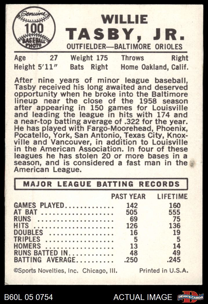 1960 Leaf #100 Willie Tasby 3 - VG
