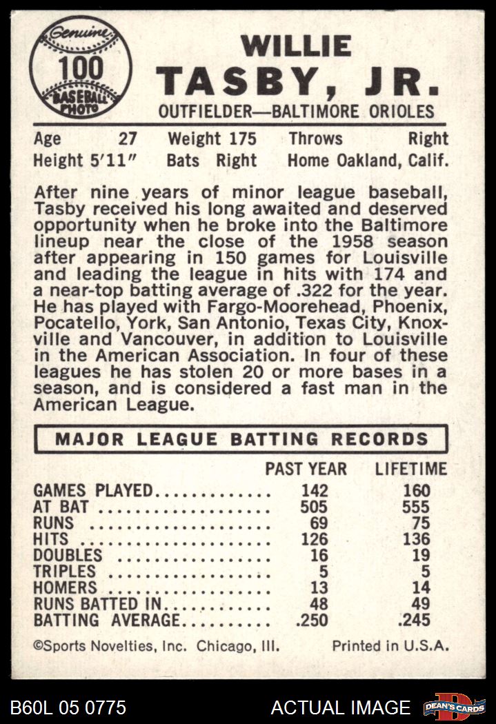 1960 Leaf #100 Willie Tasby 5 - EX