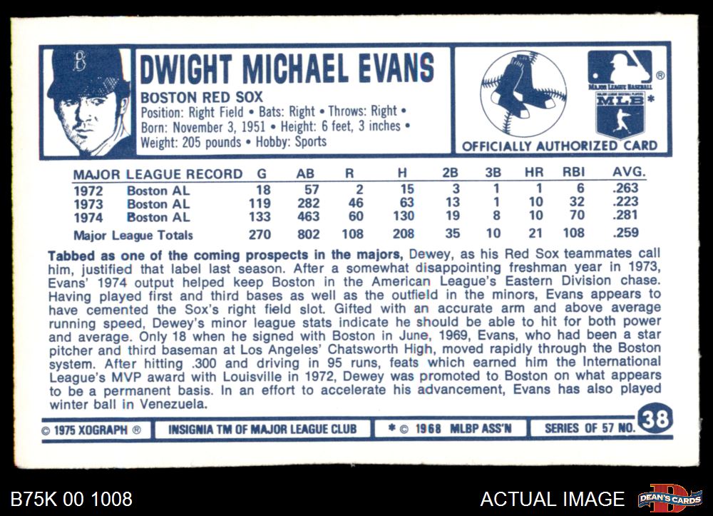 1975 Kellogg's #38 Dwight Evans 5 - EX