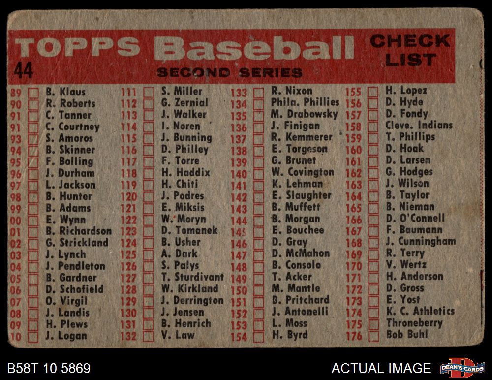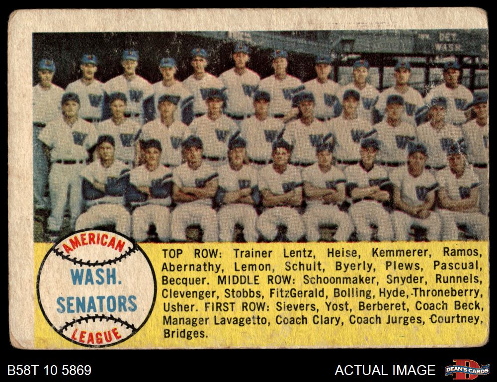 1958 Topps #44 Senators Team Checklist 1 - POOR