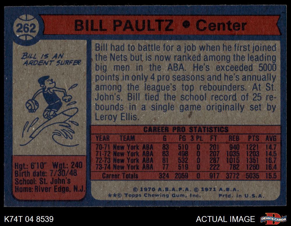 1974 Topps #262 Billy Paultz 6 - EX/MT