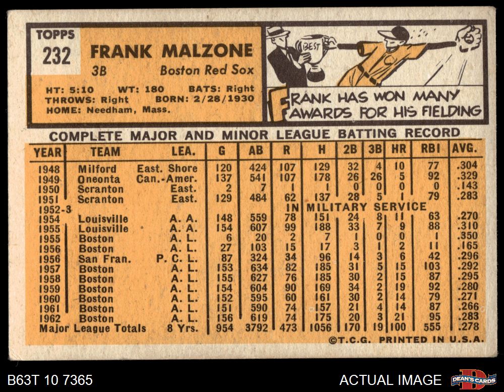 1963 Topps #232 Frank Malzone