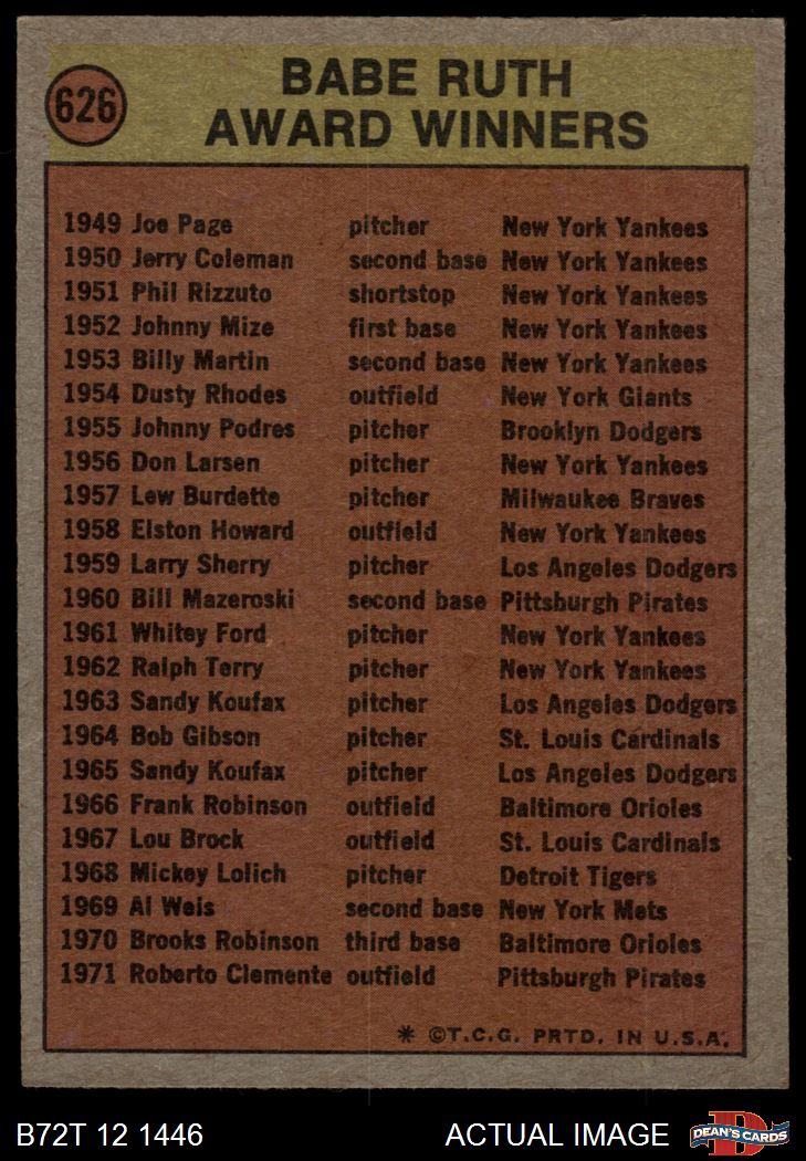 1972 Topps #626 Babe Ruth Award 4.5 - VG/EX+