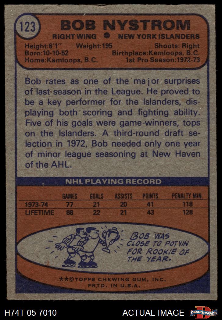 1974 Topps #123 Bob Nystrom 4.5 - VG/EX+