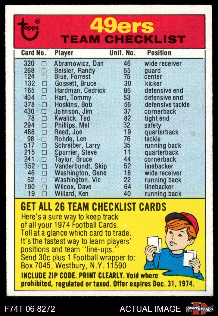1974 Topps Football Cards (12,393 available)1974 Topps Checklist 49ers (17 available)