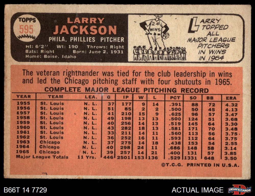 1966 Topps #595 Larry Jackson 1.5 - FAIR